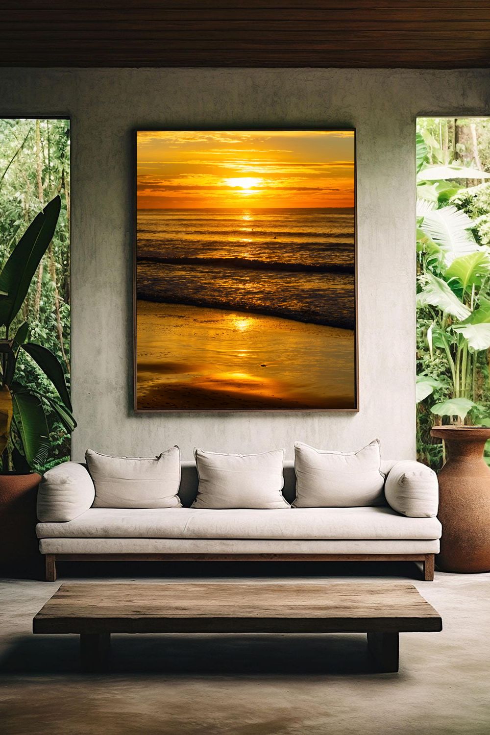 Un instant suspendu, où le soleil embrase le ciel et caresse le rivage.